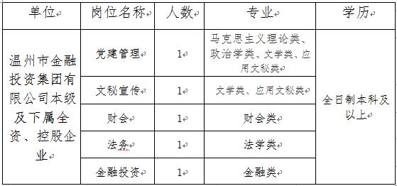 溫州市國有資本投資運營有限公司關于公開招聘工作人員的公告