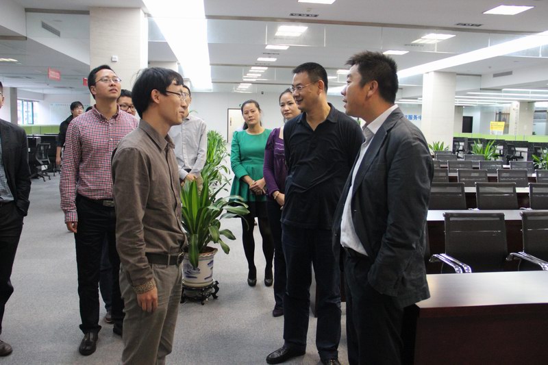??????? 2013年11月1日下午,浙江省證監(jiān)局副局長蔡建春一行4人在溫州市金投集團副總經理徐武敦的陪同下考察溫州金融改革廣場。在參觀過一樓的小微企業(yè)融資綜合服務中心之后,蔡局長一行著重考察了位于廣場二樓的股權營運中心。??????? 蔡建春副局長對溫州股權營運中心目前的營運狀況進行了了解,與中心總經理應建敬進行了交談,并對溫州股權營運中心寄予厚望,相信在未來,溫州股權營運中心能為溫州金融改革作出巨大的貢獻。(圖文產權辦公室提供)