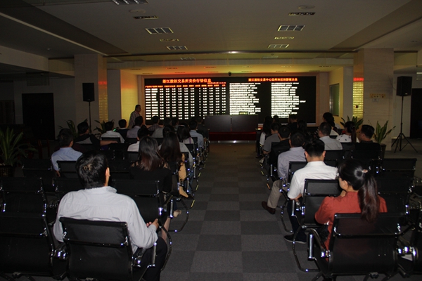 考察人員首先聽取廣場工作人員對一樓入駐單位的基本情況介紹,對相關(guān)的業(yè)務內(nèi)容進行了詳細了解,并對溫州市股權(quán)營運中心、溫州產(chǎn)權(quán)交易市場有限公司、溫州市金投融資擔保有限公司等單位的業(yè)務開展進行了積極交流探討。隨后,在廣場二樓大廳,考察團一行仔細參觀了溫州農(nóng)村產(chǎn)權(quán)交易公司及溫州市股權(quán)營運中心股權(quán)交易大廳,并相應了解了上述公司的業(yè)務開展情況。