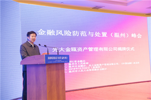 被稱為“壞賬銀行”的資產管理公司,被視為處理當下不良率的一種重要途徑。12月22日上午,金融風險防范與處置(溫州)峰會在市人民大會堂召開。會上,由光大集團、溫州市金融投資集團發(fā)起設立的光大金甌資產管理公司正式揭牌。