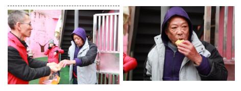 ? ? 黨員志愿者們?yōu)橹行牡臍埣踩宋故澄?,還為他們戴上保暖的毛帽。