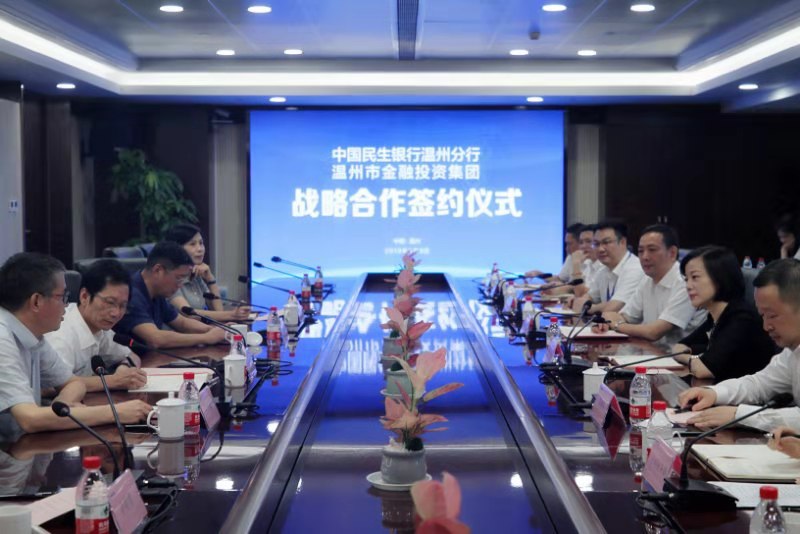 9月9日下午,溫州金投集團(tuán)與民生銀行溫州分行在金融大廈舉行全面戰(zhàn)略合作協(xié)議簽約儀式。溫州金投集團(tuán)董事長邱海華、副總經(jīng)理胡仕漢、總會(huì)計(jì)師王秀福,民生銀行溫州分行行長何青、行長助理韓曉東等出席簽約儀式。