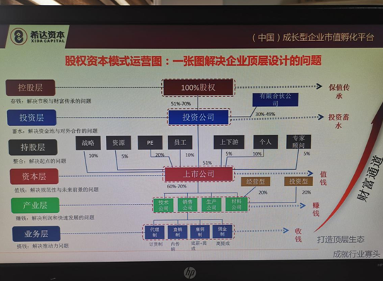 此次活動,以走向資本市場作為企業(yè)發(fā)展的重要目標(biāo)為導(dǎo)向,圍繞提升企業(yè)價值,完善公司治理結(jié)構(gòu),優(yōu)化股東結(jié)構(gòu)等內(nèi)容展開?;顒又校__(dá)資本董事長茍旭杰老師以股權(quán)資產(chǎn)價值提升為主要授課內(nèi)容,系統(tǒng)對企業(yè)的戰(zhàn)略規(guī)劃、商業(yè)模式等內(nèi)容進(jìn)行深入分析,并重點圍繞“主體公司如何印股票、如何打造強勢資源體、寡頭孵化實操案例”等內(nèi)容進(jìn)行了詳細(xì)講解。