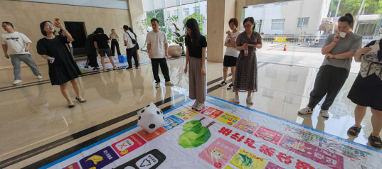 講座結(jié)束后,在公司大廳設(shè)置了“垃圾分類單人飛行棋”、“垃圾分類雙人pk賽”、“節(jié)能降碳知識(shí)競(jìng)答”、“趣味競(jìng)走垃圾分類”四個(gè)游戲打卡點(diǎn),通過趣味游戲普及日常垃圾分類知識(shí),倡導(dǎo)綠色環(huán)保理念。大家在游戲互動(dòng)交流,學(xué)習(xí)垃圾分類知識(shí),寓教于樂。