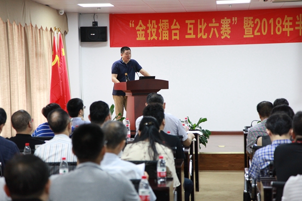?? 溫州網(wǎng)訊8月23日下午,溫州金投集團舉行“金投擂臺·互比六賽”活動。金投集團旗下金投擔保、產(chǎn)業(yè)基金、聯(lián)合產(chǎn)權交易中心、財開公司、國投建設及制造類企業(yè)在現(xiàn)場匯報半年來業(yè)績,按照“賽項目、賽進度、賽落實、賽創(chuàng)新、賽質(zhì)量、賽擔當”的六賽要求,“曬”出半年度成績,并由集團分管領導予以點評,最后由現(xiàn)場參會的60余名集團及成員公司中層以上干部打出考核分數(shù)。